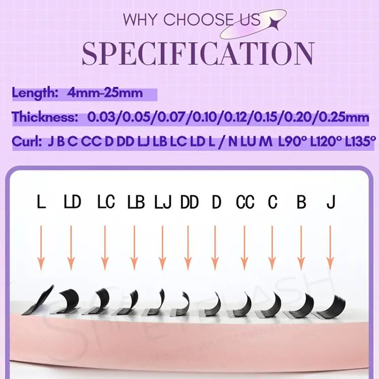 În ceea ce privește grosimea, SP Eyelash oferă o gamă largă de la 0,03 mm la 0,20mm.