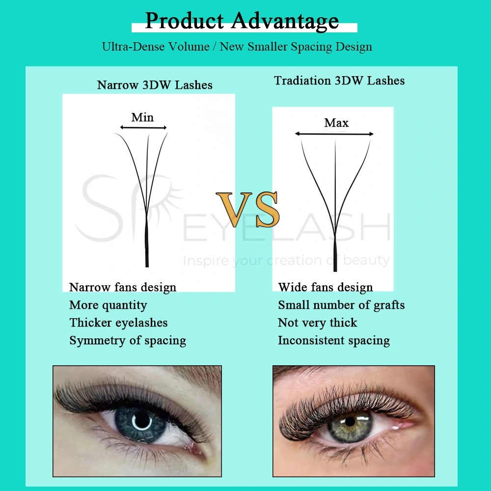 În comparație cu genele tradiționale în formă de Yy, extensiile noastre înguste de tip YY modernizate prezintă o deschidere mai mică și linii mai netede, creând un efect conectat perfect și mai voluminos. Aranjamentul compact reduce lacunele dintre genele, creând o plinătate naturală, dar dramatică. Aranjamentul cu densitate mai mare se modelează linii mai adânci și mai pline, în timp ce designul ventilatorului mai restrâns asigură un aspect mai mic și mai egal. Între timp, baza de ventilatoare mai mică, împerecheată cu o bandă extinsă, creează o zonă de legare mai mare, sporind astfel aderența și durabilitatea și evitând mizeria și inegalitatea care pot apărea cu genele în formă de W larg.