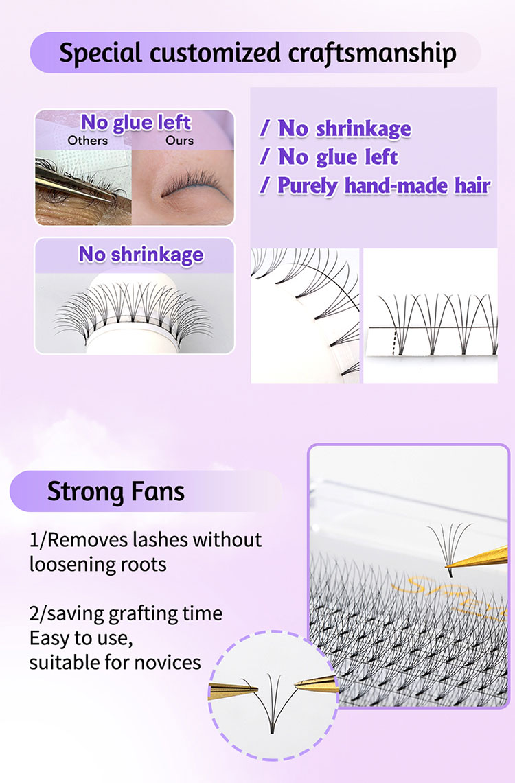 Pentru cei interesați de achizițiile en -gros de cantități mari de fani premade 12D, SP Eyelash vă întâmpină să ne contactați. Prioritizăm calitatea, iar echipa noastră profesională este aici pentru a vă ajuta cu probleme cu privire la tava mixtă de extensie a earpelor Fanilor Premade. Ne -am angajat să vă asigurăm satisfacția cu fiecare achiziție.
