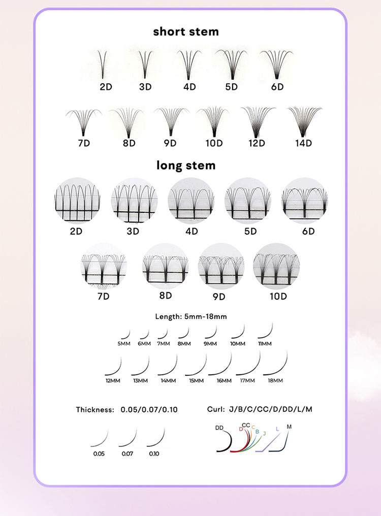 Fanii premadei 12D genele scurte ale tulpinilor au o buclă stabilă care poate suporta diverse condiții, asemănându -se îndeaproape cu flexibilitatea genelor naturale pentru un aspect foarte realist. Aceste genele își mențin ondularea timp de aproximativ 12 luni, fără a pierde cu ușurință forma, asigurând genele frumos ondulate pentru o perioadă îndelungată.