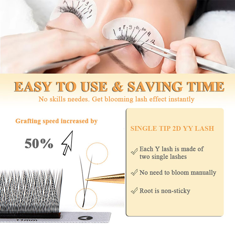 Fiecare pereche de extensii de gene YY 2D începe cu o înțelegere profundă a frumuseții ochilor. Știm bine că machiajul ideal pentru ochi nu este despre culori îndrăznețe și grele, ci despre conturarea farmecului în detalii. Din acest motiv, Extensiile de gene YY 2D sculptează meticulos o structură unică „Y” pe fiecare fibră - două vârfuri fine, ca niște pene noi de puf, despărțite dintr-o bază solidă și, într-o clipă, se întrepătrund pentru a crea un efect dinamic, care este atât pufos și plin, cât și ușor și aerisit.